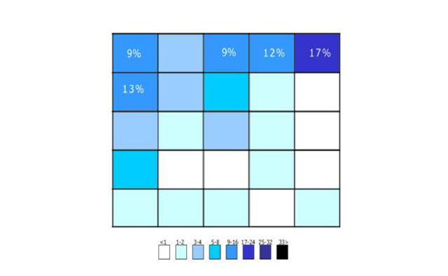 瀏覽見面的用戶當他不得不去搜索搜索框時,這并不好,因為它不顯眼,也不容易識別。下面的圖表取自a . Dawn Shaikh和Keisi Lenz的一項研究:在對142名參與者的調查中顯示了網站搜索表單的預期位置。研究發現,對大多數用戶來說,最方便的地方是網站頁面的左上方或右上角。