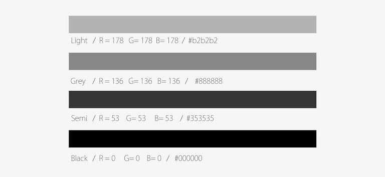 主內容 Black 黑色,次要內容 Grey 灰色;時間戳與表單缺省值 Light 灰色;大段的說明內容而且屬于主要內容用 Semi 黑。