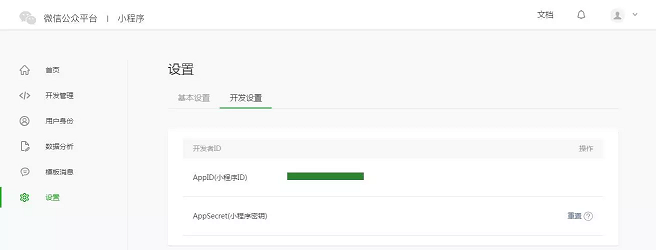 登錄微信公眾平臺,就可以在網站的“設置”-“開發者設置”中,查看到微信小程序的 AppID 了,注意不可直接使用服務號或訂閱號的 AppID 。