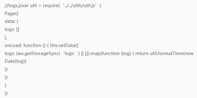 logs 頁面使用 <block/> 控制標簽來組織代碼,在 <block/> 上使用 wx:for 綁定 logs 數據,并將 logs 數據循環展開節點。