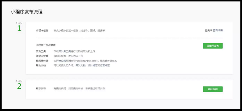 完成注冊后,微信小程序信息完善步驟和開發可同步進行。