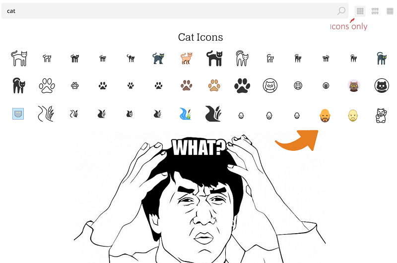 我讓參與者在純圖標模式下搜索“貓”,然后指出任何離譜的搜索結果。