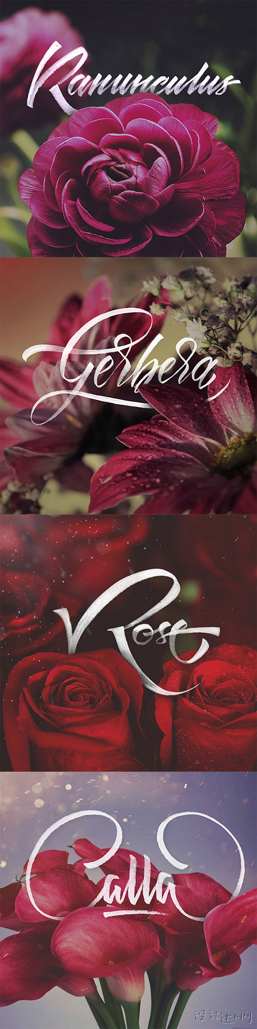最近發現一個美麗漂亮的花卉文字海報排版。他們的特色都是用鮮花、花卉+文字組合,而最特別之處就是文字會穿插在花瓣里,比如將花莖、花瓣、葉子纏繞到字母上,這是一種大膽的排版結構,能讓用戶享受奇妙美麗的視覺,網頁設計中也可用到哦!