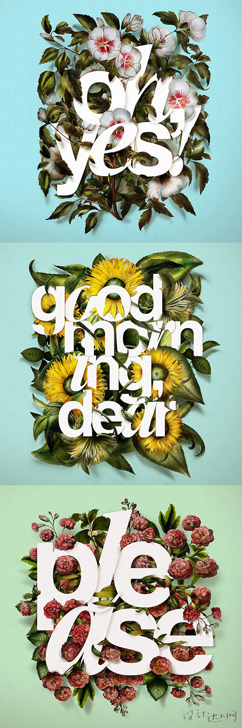 這里我們為大家展示一組文字與花卉穿插的創意海報排版作品,一起來看看設計師們是如何制作這些效果的,希望能給你帶來靈感,Enjoy!