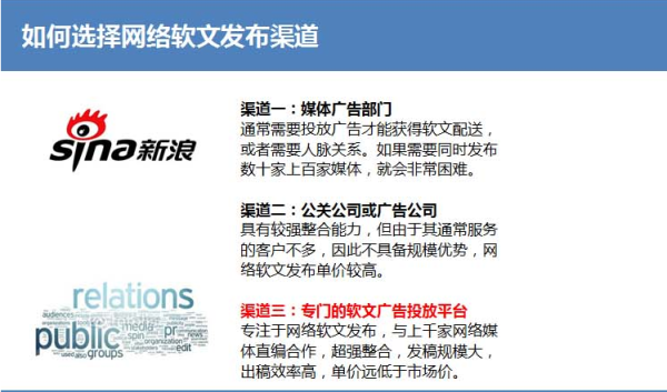 選擇軟文投放平臺對普通個體(中小企業)是最經濟的方式,諸如BAT等少數財大氣粗的玩家才具備通過公關公司大批量買斷KOL以及媒體進行造勢的實力。