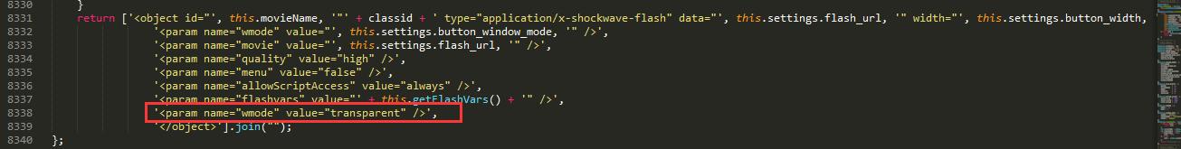 在他的kindeditor-all.js文件中,對上傳圖片的objcet標簽的父標簽的div設置了絕對定位,又重新做了一個按鈕的div,把object標簽的父標簽div定位到我新做的按鈕div上,設置object標簽的父標簽div的透明度opacity:0,如下圖