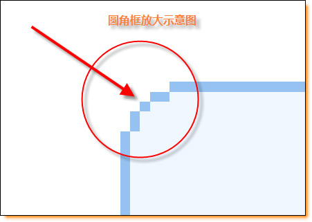 純CSS方式實現圓角框的原理在網絡上已經有很多人詳細解說了,下面這個示意圖是我將其中的一個圓角進行放大后的效果。