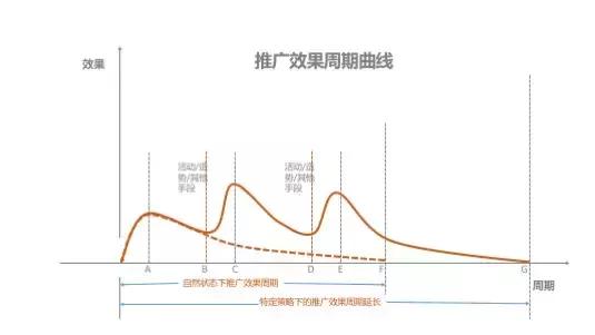 推廣中的各種措施和手段就是為了大化的延長推廣效果周期,假設推廣效果用f(x)表示的話,我們要做的就是大程度的促進f(0~g)>f(0~f)。