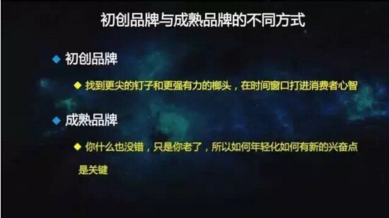 當然我說的成熟品牌都是15-20年這種品牌。多數像我們這些創業者,包括分眾,更多的還是把自己最核心的定位傳輸給別人。