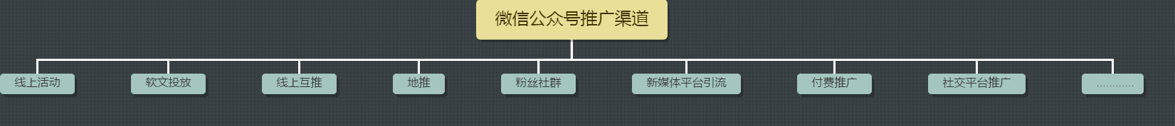 那我們可以知道,我們在接到通知時,老板一般都會給我們一個目標,然后我們再去執行。就像上面例子中的小賤,老板要求他不到20天內微信漲粉1萬,這就是結果。知道結果之后,小賤接下來就是執行,在執行前,小賤得先知道有哪些渠道是來粉絲的,所以小賤就要開始羅列之前以及現在一直用的渠道,還要找到自己沒有用過的渠道。下面是小賤羅列出了幾個關于微信漲粉的渠道。