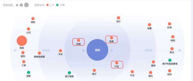 當大部分人認為裝修最在乎價格時,我們在百度指數的需求圖譜中驚訝地發現,原來關于裝修,用戶最在乎效果、風格、戶型等信息。這意味著文案的切入點,可以選擇這樣的角度。