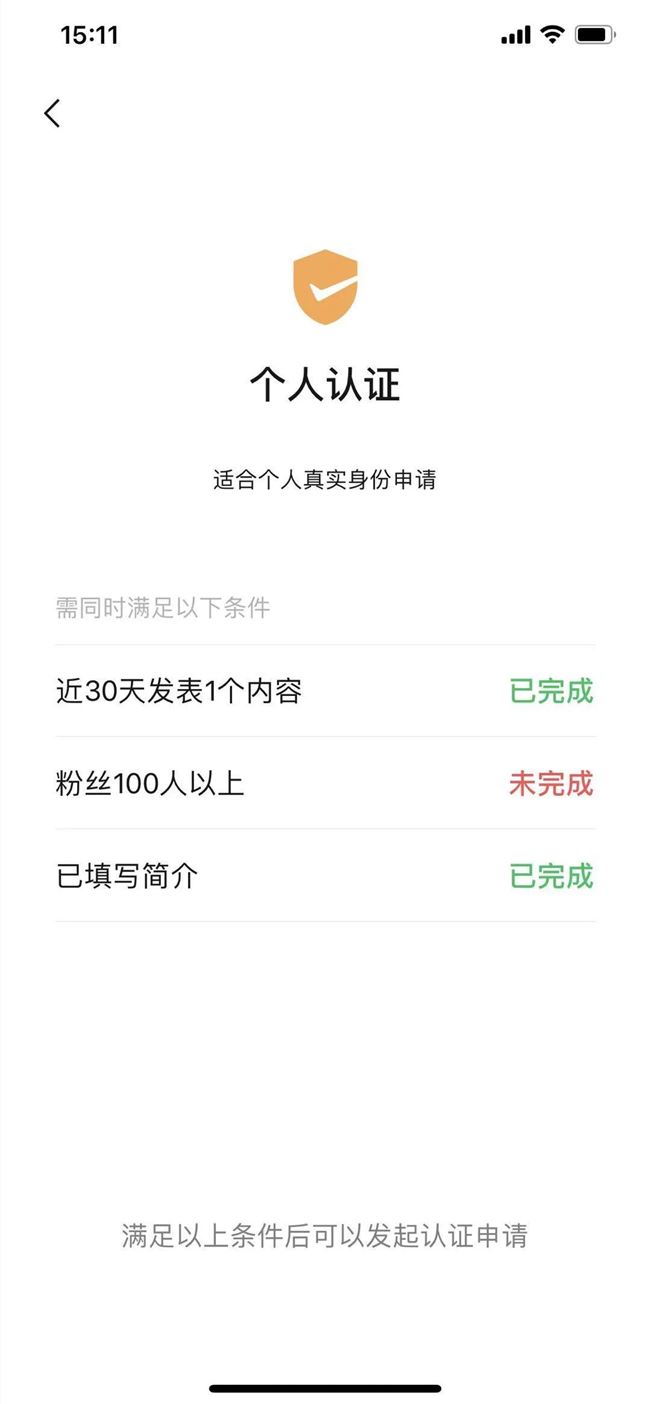 “橙V”個(gè)人認(rèn)證有三條門檻: