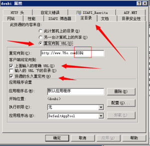 打開IIS網站屬性找到主目錄選擇重定向到url,同時選擇資源的永久重定向和上面輸入準確的url