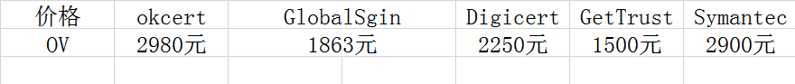 不同品牌的OV證書價(jià)格會(huì)有不一樣,每個(gè)品牌的特點(diǎn)也會(huì)有所不同,公司可以根據(jù)自身需求,選擇適合您公司的品牌證書,下面是關(guān)于OV證書的價(jià)格表: