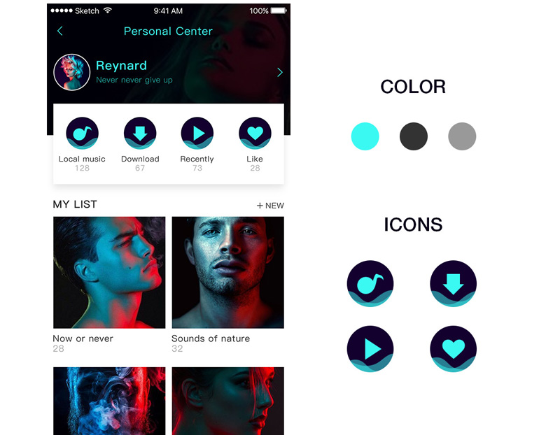 創新互聯今天為你提供“五個音樂app界面設計顏色搭配”,希望能帶來你音樂app設計顏色搭配靈感。
