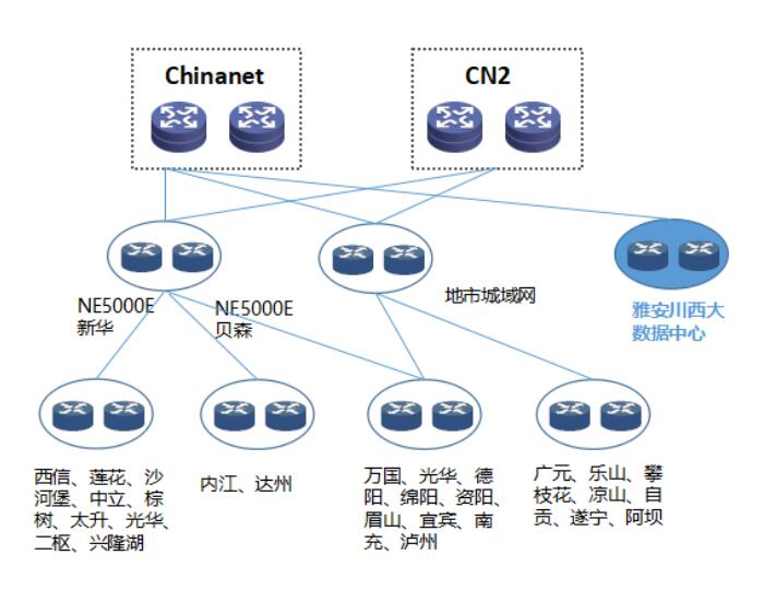 川西大數據中心目前是全省唯一 ,在除省會城市以外設立的省級骨干傳輸節點,IDC出口設備直連163 C路由器的組網。具有獨立公有的AS自治域號碼,在全球互聯網上具有唯一性,可便捷的開展全動態BGP網絡連接服務,帶寬3-5Tbps,至骨干網延遲<1.8ms,三個不同方向的物理傳輸路由,確保網絡和數據的高可靠性、高安全性。