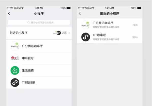 用戶需要升級微信到6.5.6或以上版本才能查看。在“附近的小程序”里選擇你需要的小程序,就可以查看它的門店信息,或者直接使用它的服務。