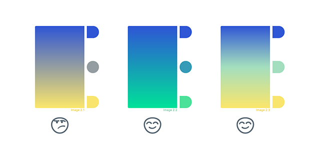 漸變應(yīng)該與容器對(duì)齊,與布局保持一致,并指向用戶的眼球應(yīng)該指向的地方。對(duì)于x面多邊形(正方形、三角形、矩形、五角形等),這通常意味著一個(gè)線性梯度;圓形區(qū)域需要徑向。