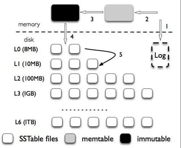 來看一個 LevelDB 的例子,方便我們理解,LSM-tree 被分成三種文件: