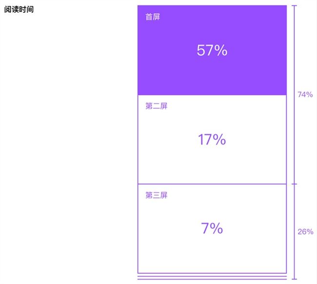 如題,用戶把大約80%的時間花費在前三屏,其中首屏占了超過一半(57%),前兩屏加起來占了3/4(74%)。所以實際上占大頭的還是前兩屏,第三屏7%的占比其實并沒有什么影響力。