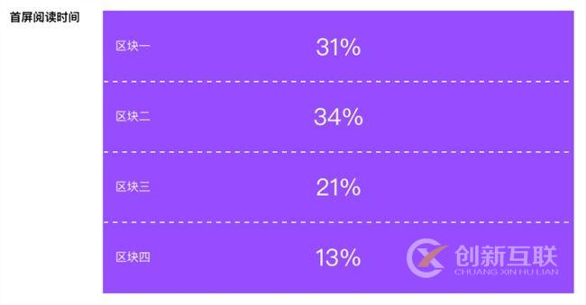 既然首屏這么重要,那不妨單拎出來。如果把首屏平分為 4 個區(qū)塊,實際上用戶最關(guān)心的區(qū)塊不是最上面那個,而是第二個(雖然兩者相差也沒多大)。