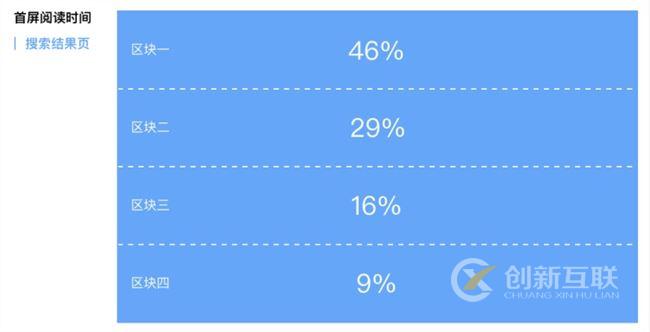 對比下圖會發(fā)現(xiàn),在搜索結(jié)果頁用戶對滾頁更沒耐心一些,將近一半(46%)的時間都花費在了第一區(qū)塊,前兩個區(qū)塊的總占比達到3/4(75%)。