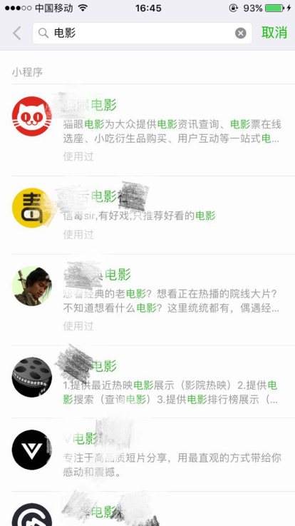 但如果完全開放小程序模糊搜索的功能,用戶就可能會搜索出很多功能不精準的小程序。在這種情況下,用戶就需要花一點時間對搜索結果進行篩選,那就和公眾號內容搜索沒什么區別了。如果用戶在搜索小程序時用了太多時間,就不符合小程序即用即走的定位了。