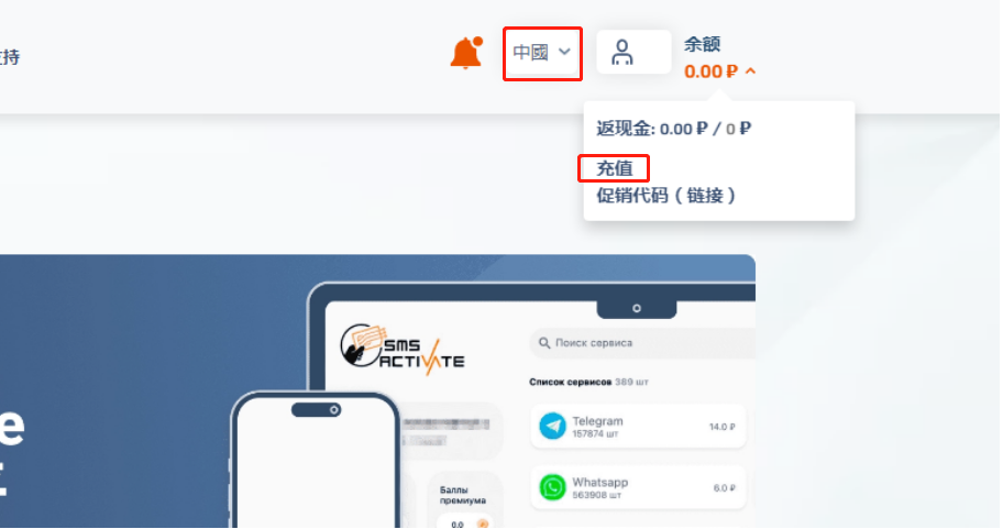 打開接碼平臺sms-activate.org,注冊一個賬號