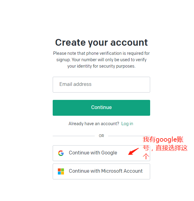 首先是打開ChatGPT的賬戶注冊頁面。谷歌注冊或者郵箱注冊都可以,無所謂,這里用郵箱注冊作為例子。