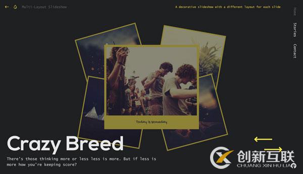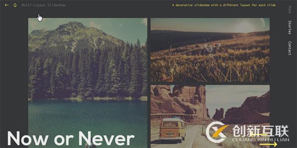 網(wǎng)頁設(shè)計(jì)中簡單的裝飾幻燈片組件。這個幻燈片背后的想法是有一個個體為每個幻燈片布局,伴隨著一種獨(dú)特的效果。每個幻燈片的圖片是為了有一個可以適合裝飾目的的一篇文章標(biāo)題;或者,例如,一個裝飾報(bào)價(jià)文章會有一個報(bào)價(jià)裝飾的幻燈片。