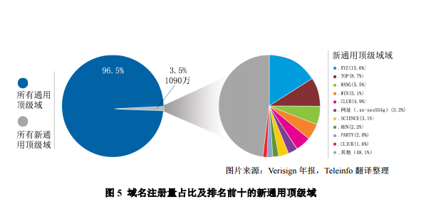 但是與傳統通用頂級域名的狀態相反,新頂級域名的市場潛力正在爆發,尤其是我國已經成為全球第二大域名市場。據域名注冊量占比及排名前十的新通用頂級域的數據所示,.xyz以絕對優勢占據榜首,憑借其巨大的想象空間和符合語言習慣的特點,迅速發展為龍頭老大.com的威脅之一,甚至曾經引發了一場曠日持久的商業糾紛,并對簿公堂。