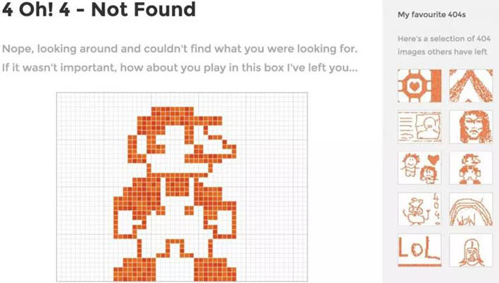 這個404頁面是一個充滿空白像素的畫布,你可以隨意涂鴉。