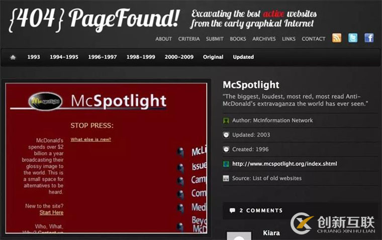 在這里你可以找到從1993年到2009年不同網站的歷史版本。它是一個小型的互聯網歷史博物館。