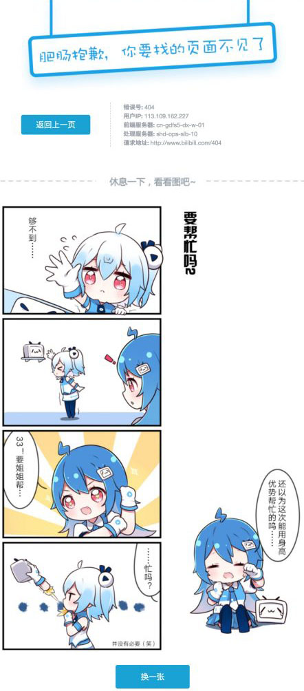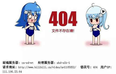 A 站的 404 頁面有著濃烈的二次元風格,前段時間 A 站無法訪問的幾天相信很多人都看過略帶憂傷的 AC 娘。