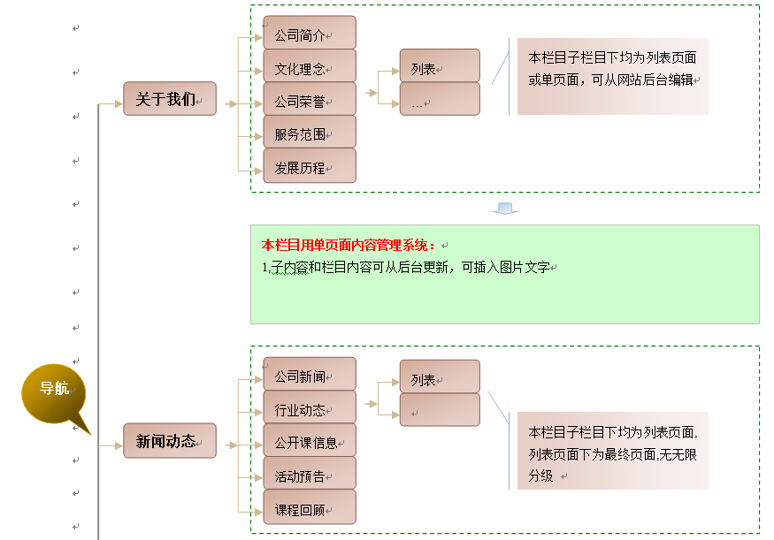 要建設的網站導航以及版塊說明可以參照以下圖片制作