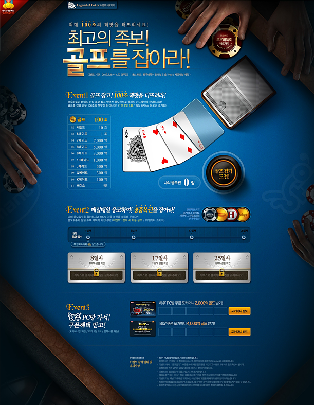 圖二:qipai類頁面設(shè)計(jì),在較少的內(nèi)容信息情況下,通常將第一屏作為首要信息顯示區(qū)域。頁面設(shè)計(jì)除了營(yíng)造強(qiáng)烈的氛圍以之外,設(shè)計(jì)師對(duì)頁面細(xì)節(jié)設(shè)計(jì)有很高的要求,桌面質(zhì)感處理的比較細(xì)膩。在這樣的靜態(tài)頁面中,也可以體驗(yàn)到較強(qiáng)的游戲感。