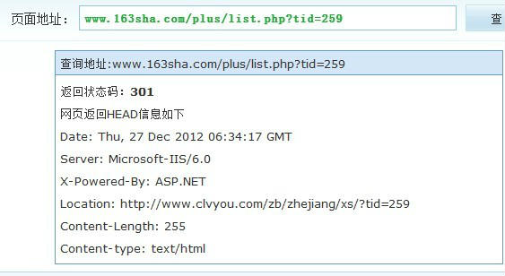 把這個http://www.163sha.com/plus/list.php?tid=259定向到:http://www.clvyou.com/zb/zhejiang/xs/