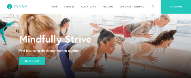 這個設計很容易導航,所以客戶不會很難找到信息。CTA按鈕被放在網站的第一頁,鼓勵顧客加入YYoga。這個按鈕是綠色的,字體是白色的,很容易被漏掉。