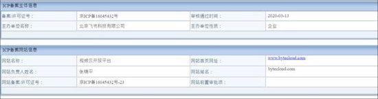 3月13日,據工信部域名備案系統顯示,bytecloud.com域名已經完成備案,其備案主體為北京飛書科技有限公司,為字節跳動的全資子公司。