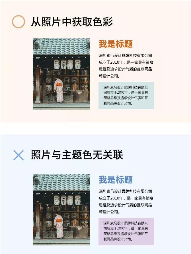 如做企業品牌網站時,這個方法同樣適用。但要優先考慮品牌VI的主色調及標配色前提下進行適度搭配。