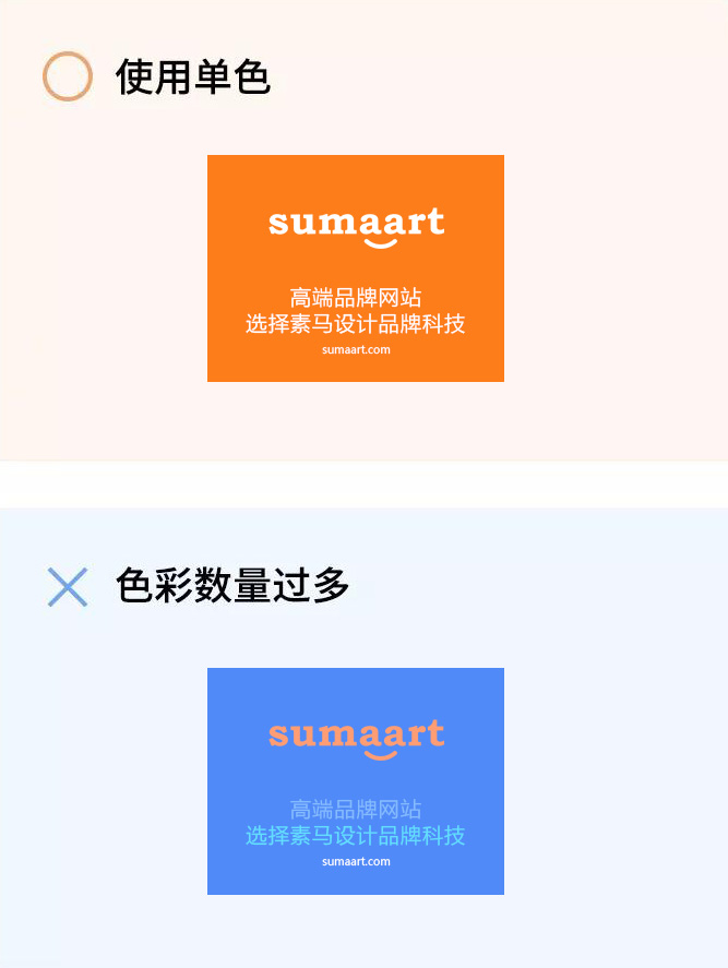 過多的彩色數量會造成混亂,嘗試使用單色來提升識別度。