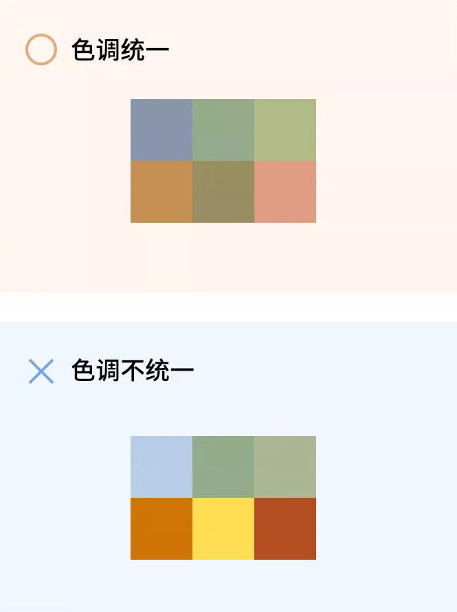 想要獲取和諧的配色,首先要使用色調統一的顏色。