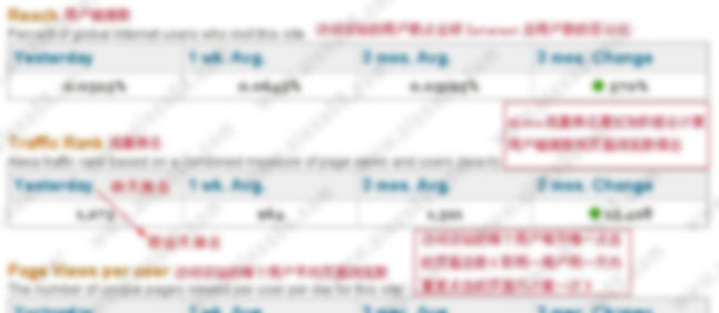 3、網站流量排名 (Traffic rank),通過網站訪問人次和網頁訪問量的幾何平均值計出來的全球網站排名。